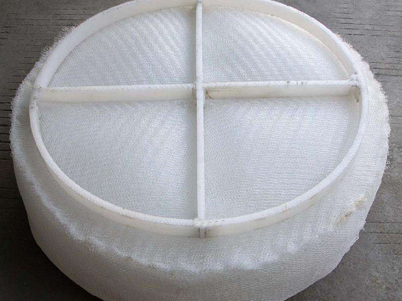丝网除沫器主要是由丝网、丝网格栅组成丝网块和固定丝网块的支承装置构成,丝网为各种材质的气液过滤网,气液过滤网是由金属丝或非金属丝组成。气液过滤网的非属丝由多股非金属纤维捻制而成,亦可为单股非金属丝。该丝网除沫器不但能滤除悬浮于气流中的较大液沫,而且能滤除较小和微小液沫,广泛应用于化工、石油、塔器制造、压力容器等行业中的气液分离装置中。